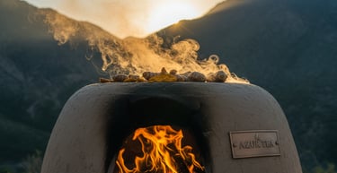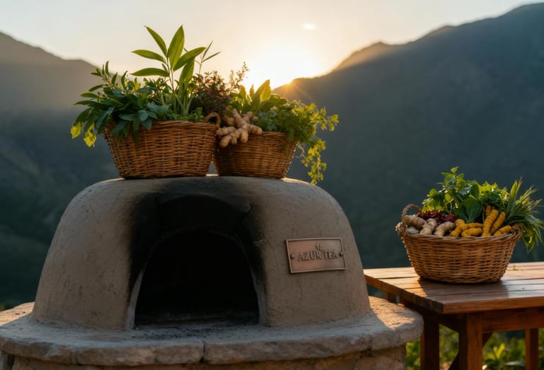 Puis vient l’assemblage, précis et respectueux, où chaque plante retrouve sa juste place. Ainsi naissent les infusions Azur Tea : façonnées par le feu, guidées par la montagne, et offertes comme un rituel de bien-être où le goût fumé devient une mémoire vivante du feu ancestral.