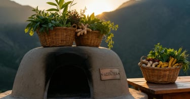 Certaines racines, écorces et feuilles sont lentement torréfiées dans un four d’argile, nourri au bois, selon un geste hérité des herboristes amazighs. La chaleur n’est jamais brutale : elle révèle, elle transforme. Sous l’effet du feu, les arômes s’approfondissent, les essences se concentrent et naît une note fumée, subtile et spectaculaire, qui signe l’infusion d’une profondeur inattendue.