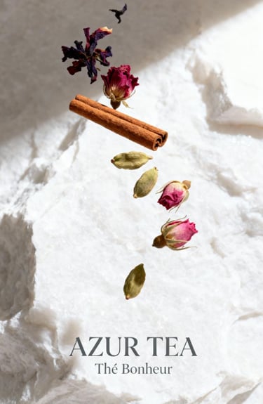 Sélectionnés comme on choisit des pierres précieuses, ils incarnent l’âme d’Azur Tea : une alchimie amazighe où chaque plante révèle sa vertu, sa mémoire et son souffle, pour composer l’équilibre parfait entre corps, esprit et sensation.